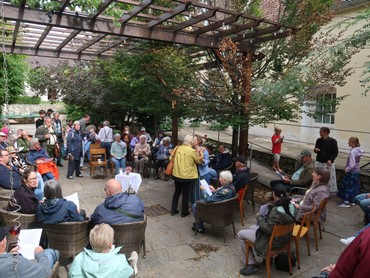 Nachdem um 8.00 Uhr bereits in Stockerau die meisten Reisenden zugestiegen waren, erlaubte die rege Teilnehmerzahl heuer auch einen Stopp am Hollabrunner Bahnhof. Danach begrüßte unser Pfarrer Christian alle im Bus mit der Tageslosung: "Ich will mich freuen des HERRN und fröhlich sein in Gott, meinem Heil" aus dem Buch Habakuk 3,1. Gestärkt durch diese Worte aus der Schrift kamen wir bald an der Rosenburg an, wo unser Vikar Armin Aigner zu uns stieß.