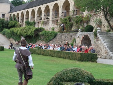 Auf der Rosenburg, welche sich im Besitz der Familie Hoyos befindet, erfuhren wir, aufgeteilt auf zwei Gruppen, viel Wissenswertes und Interessantes aus dem Leben zur Zeit des Mittelalters. Dabei wurde wenig ausgelassen, vom steinernen Donnerbalken bis zur Tapete aus muffigem Ziegenleder wurden die verschiedensten Aspekte des damaligen Lebens beleuchtet, wobei der Humor nicht zu kurz kam. Gleich darauf fand sich unsere Gesellschaft zur Falknereivorführung im Burggarten ein und auch hier konnte viel Lehrreiches, sowohl zur alten Kunst der Falknerei als auch über verschiedene Greifvogelspezies erfahren werden. Bei einer Freiflugshow sausten uns Riesenseeadler, Rotmilan und Kolkrabe, um nur einige zu nennen, so nah über und neben die Köpfe, dass es einige Zuseher gar nicht mehr auf den Sitzplätzen hielt. Schnell verging deshalb die Vorstellung. Nach dem ganzen Geflügel war es nun aber Zeit für einen Imbiss in der Burgtaverne, wo auch Gelegenheit für Gespräche zwischen den Teilnehmenden gefunden wurde.